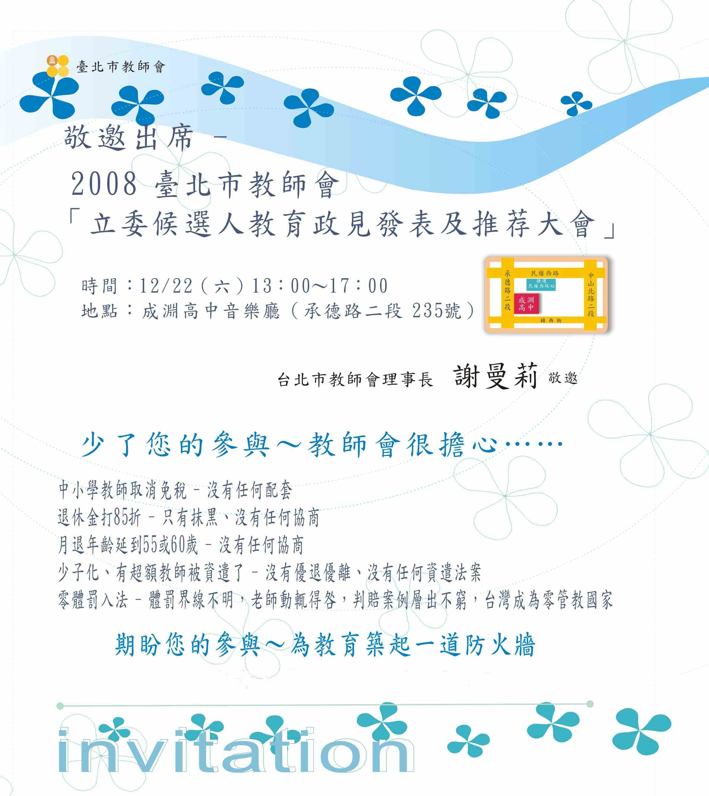 | 敬邀出席-「立委教育政見發表及推荐大會」 |
