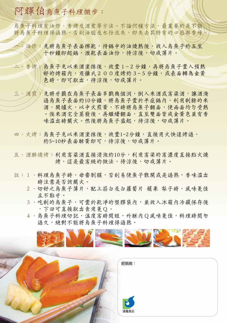 相關附件一 | 下載「阿暉伯養生烏魚子禮盒[1].doc」 | 相關附件二 | 下載「烏魚子訂購單.doc」 | 相關附件三 |  | 相關附件四 |  |