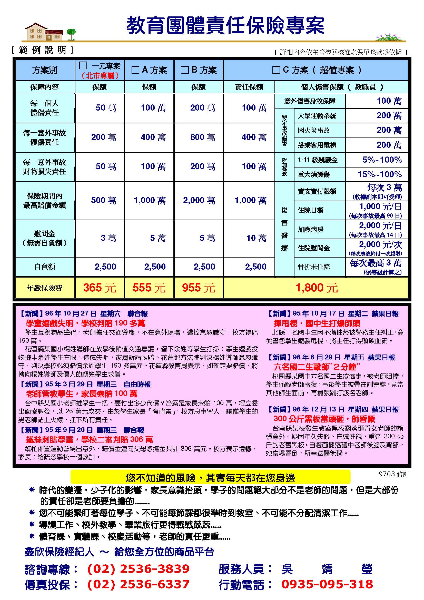 《金融工商》鑫欣保險經紀人,教育團體責任保險~~