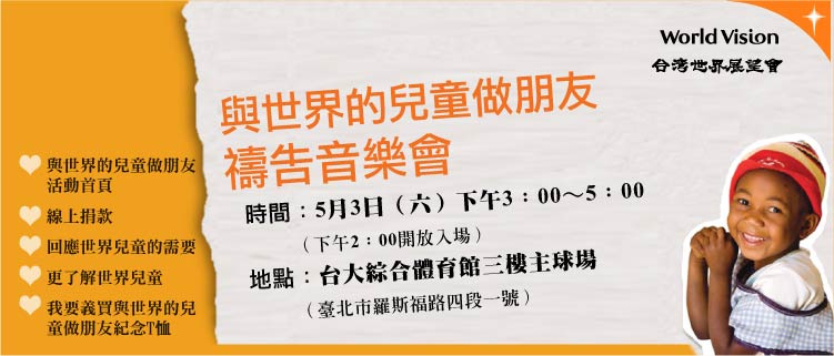 代轉訊息--台灣世界展望「與世界的兒童做朋友禱告音樂會」 |
