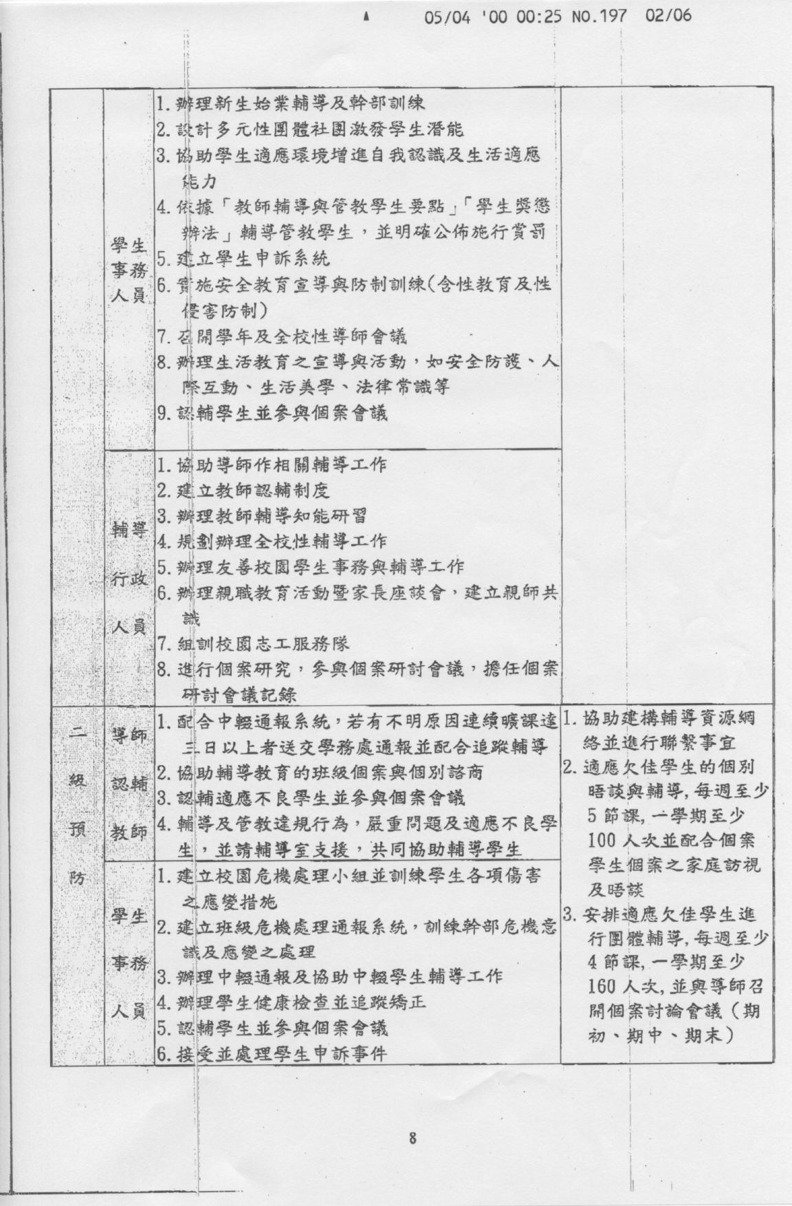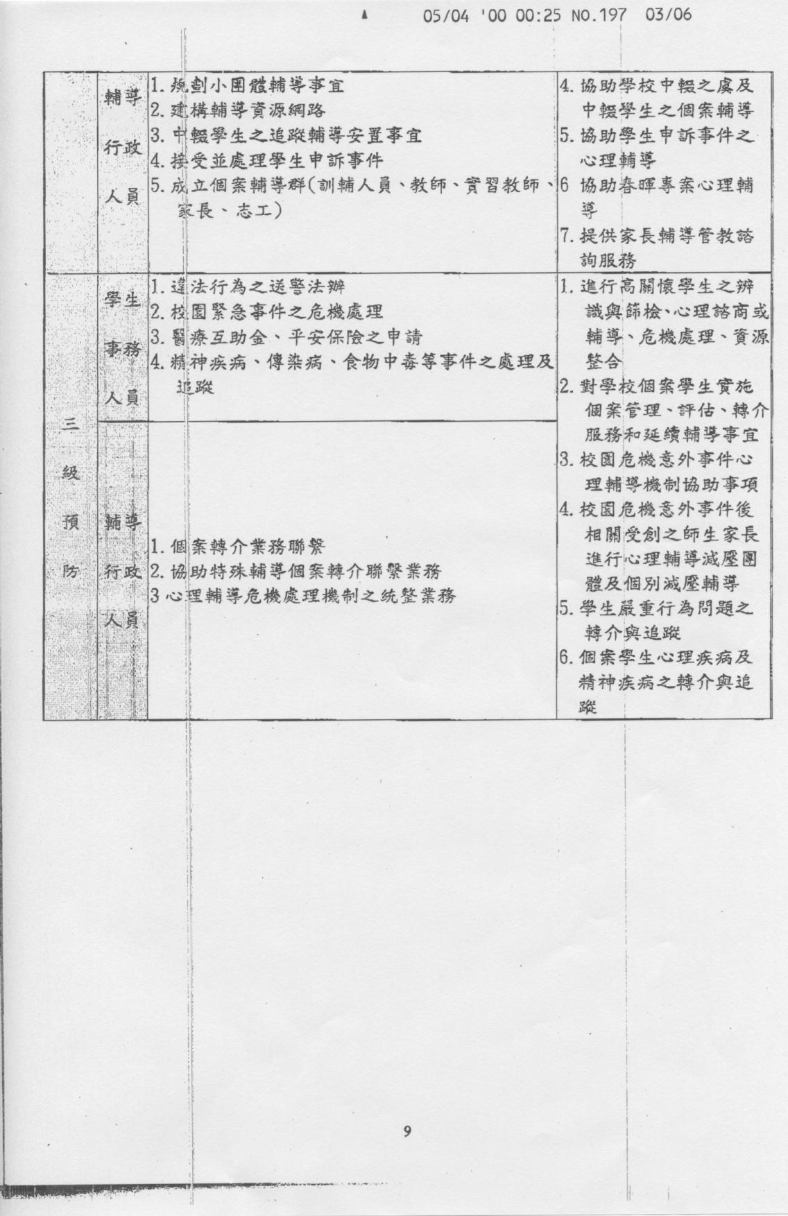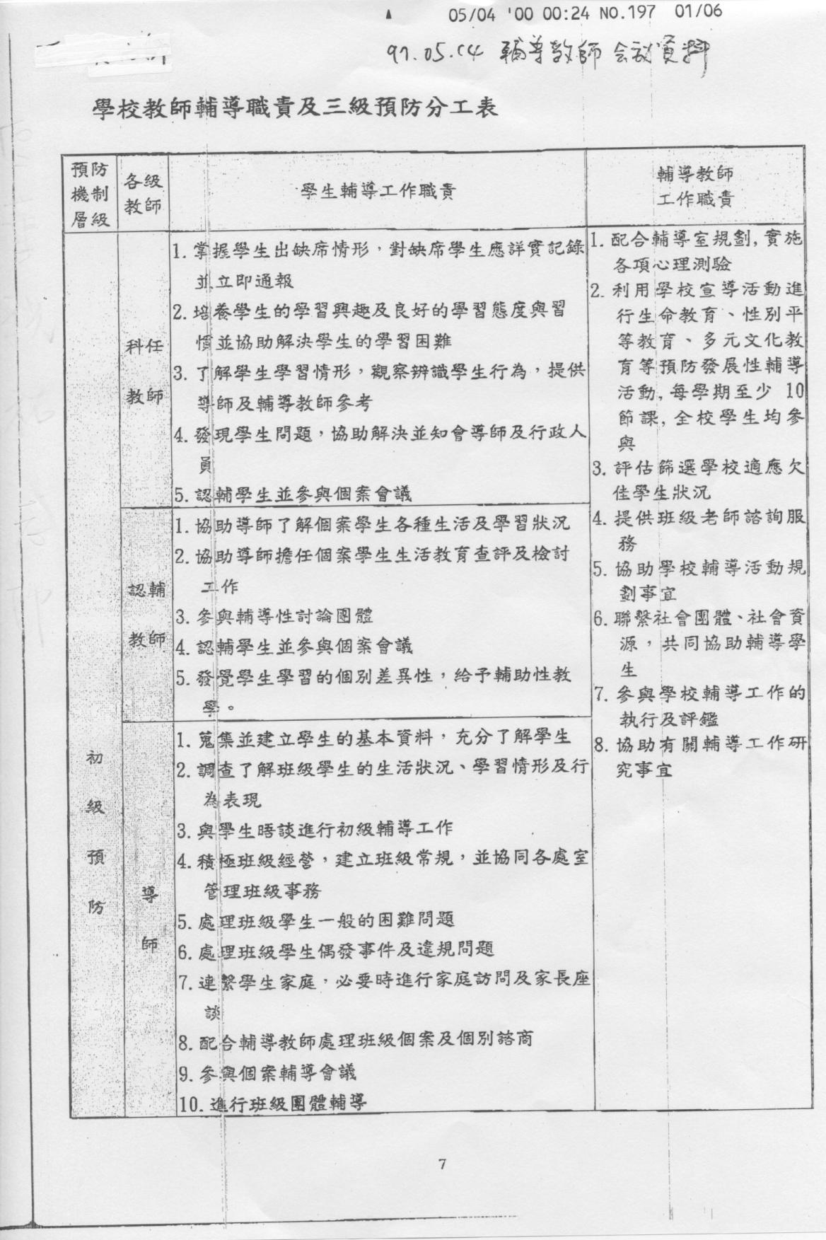 學校教師輔導職責及三級預防分工表