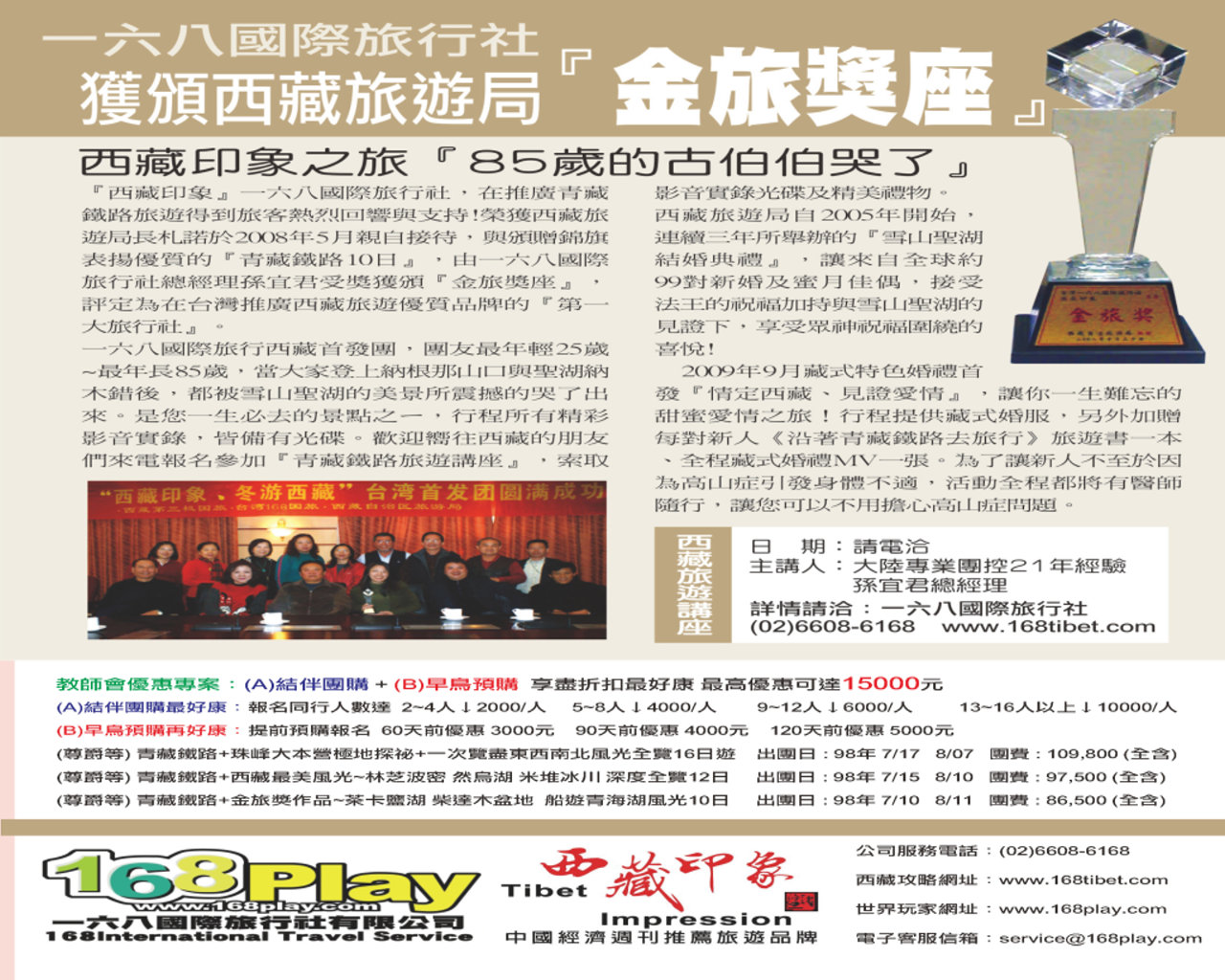 想一飽西藏風光?帶著教師卡與一六八國際旅行社聯絡吧! |