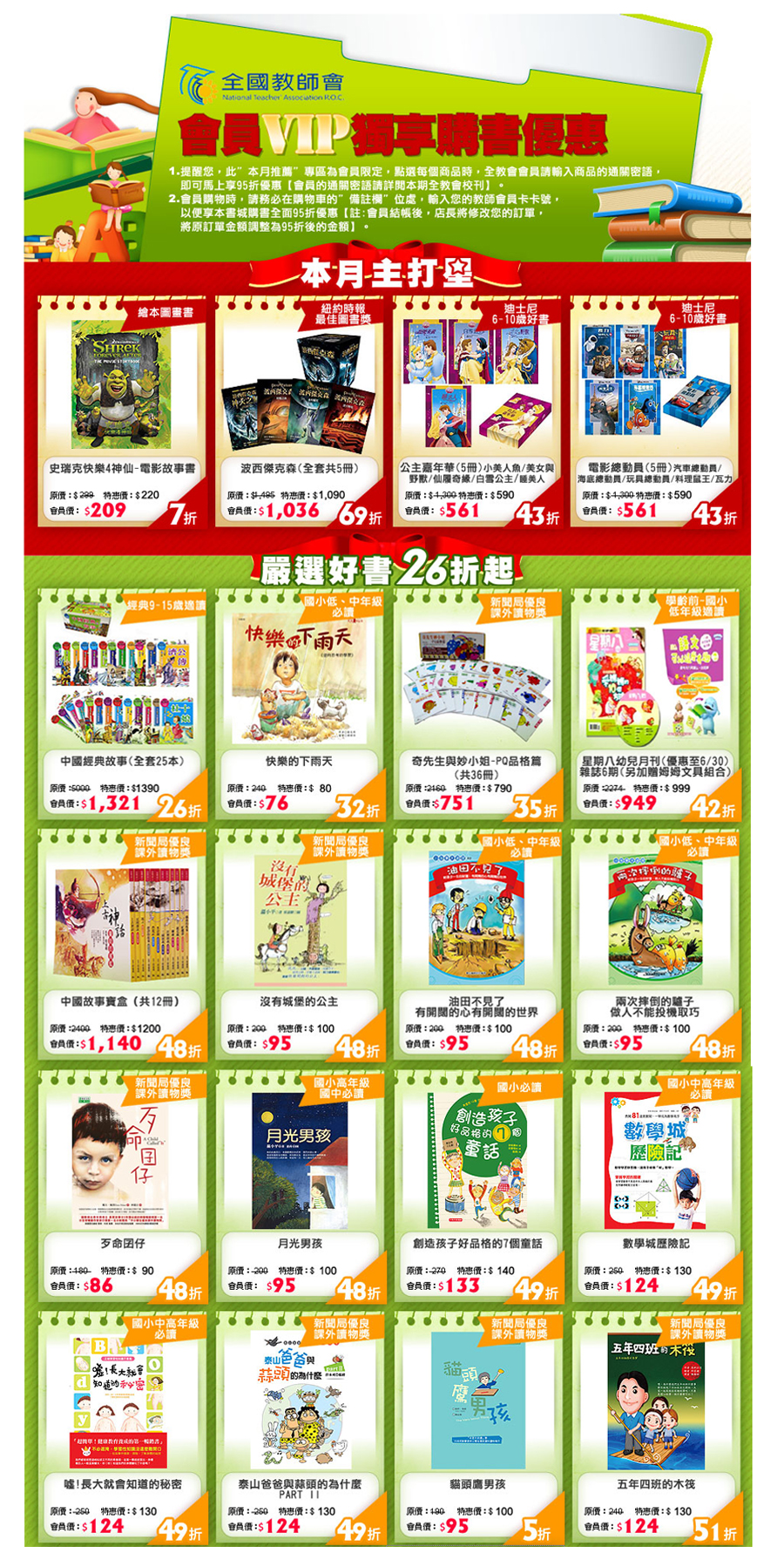 全教會訊息代轉:全國教師會推廣閱讀書城,會員95折!