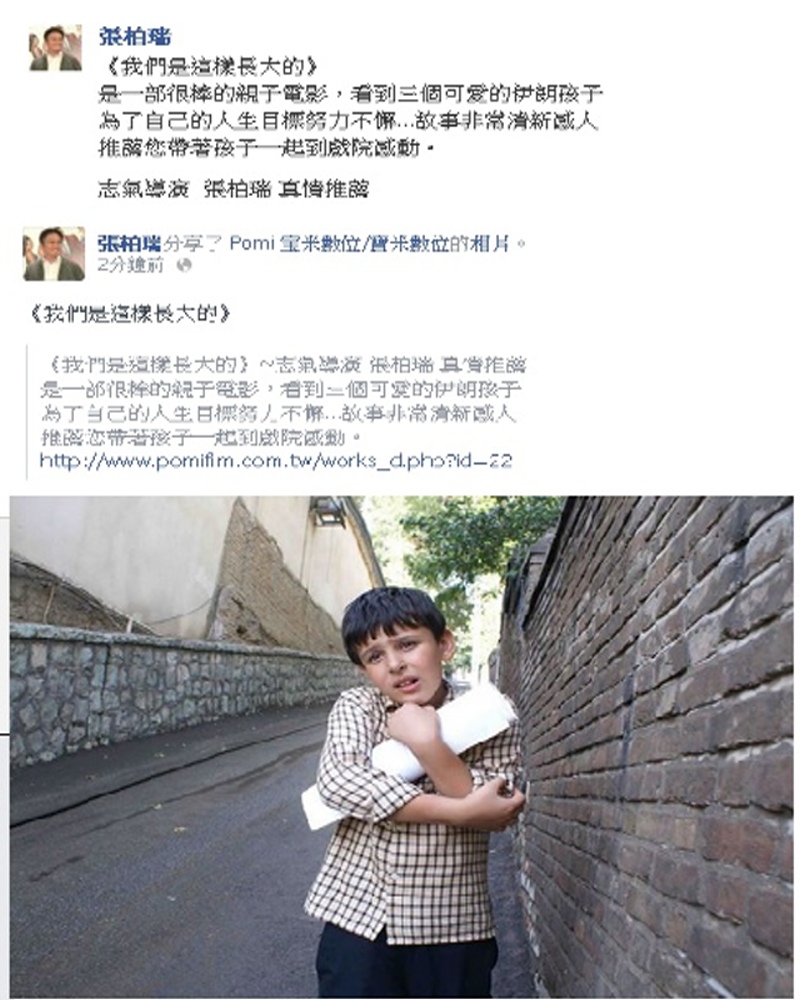 ----------------------------------------------------------------------------------------- 《志氣》導演張柏瑞,大讚伊朗小演員「有志氣!」