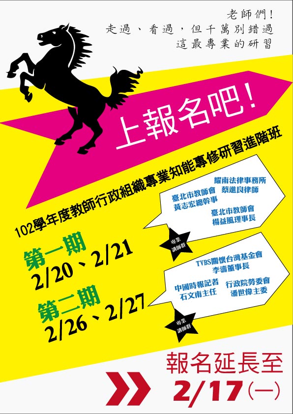 【重要研習】盡速報名<102學年度教師行政組織專業知能專修研習進階班>*! |