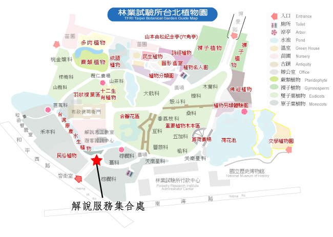 備註: 1. 礙於植物園導覽申請規定,報名參加人數未達20人,則此梯研習取消。 2. 交通資訊:公車路線:「植物園站」聯營204、242、624、630、欣欣1均可到達,相關位置圖如附圖。