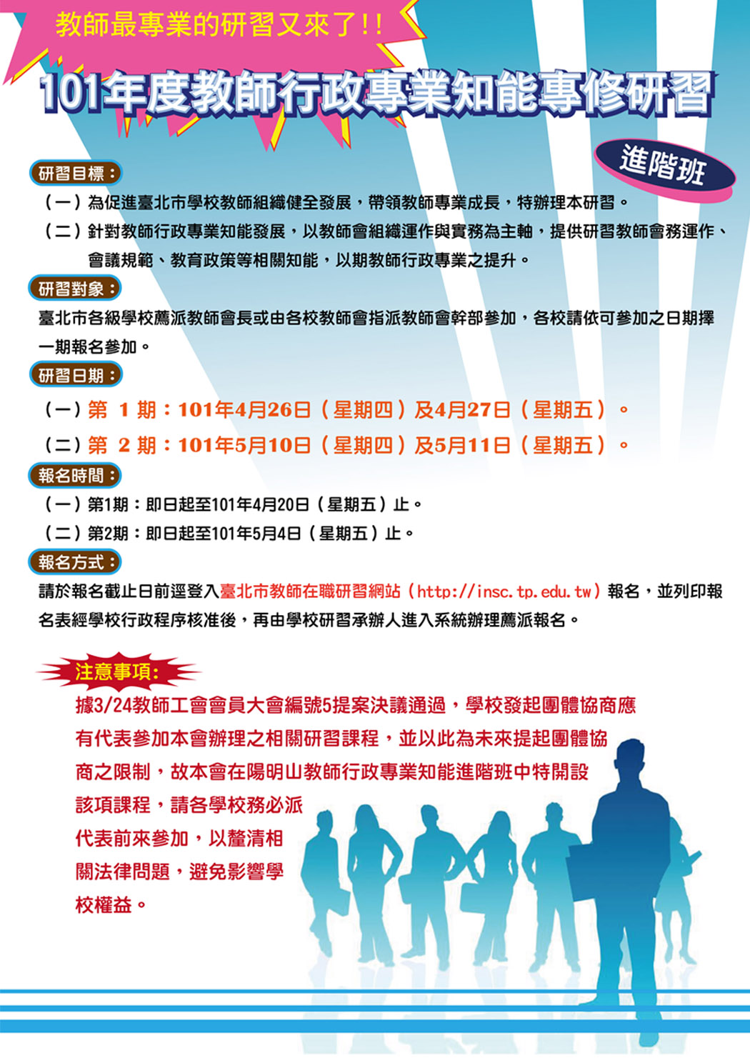 敬請報名<101年度教師行政專業知能專修研習進階班>*!! |